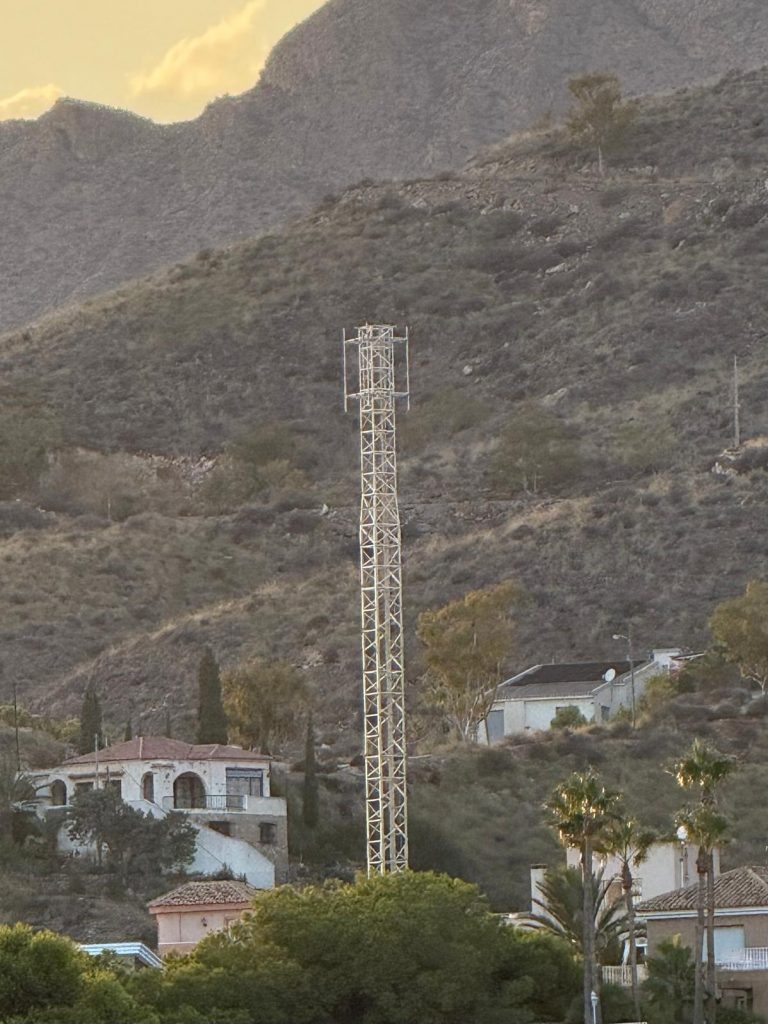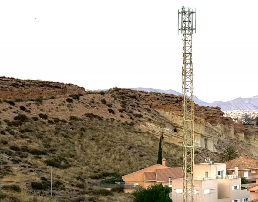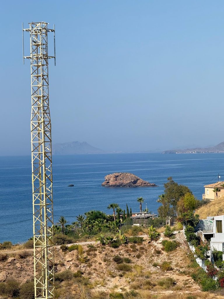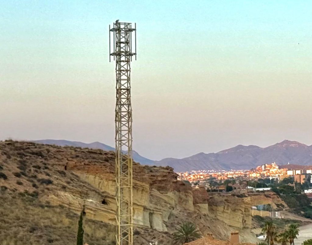 En pleno corazón de Bolnuevo, junto al monumento natural de Las Gredas, han instalado una enorme torre de 35 metros de alto para alojar antenas de telecomunicaciones 5G.